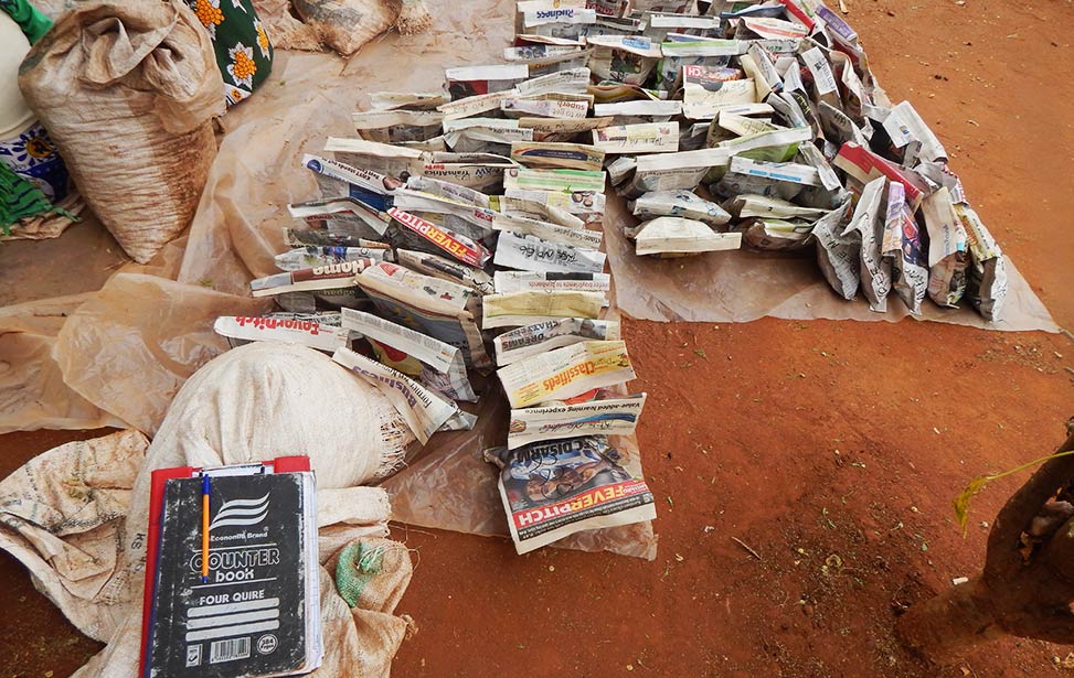 The seeds are then sorted into newspapers/paper bags, which is ideal for breathing and to avoid fungus. Everything is recorded and signed for in a counter book as of which tree the nuts came from, time and date, where the seeds are planted etc. to keep track on and control the whole process. From here, seeds are planted on the local plantation or/and distributed to our other locations.