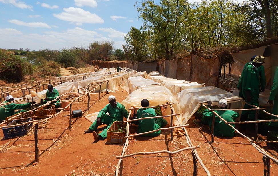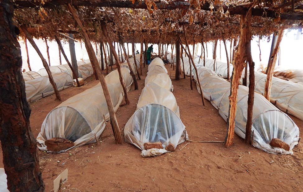 From here, the seedlings are transported into nursery beds covered with plastic to protect against rain. This will harden the seedlings and make them stronger. After three weeks, the seedlings will harden off in the open without any plastic cover for about two months until they are ready to be planted in the field.