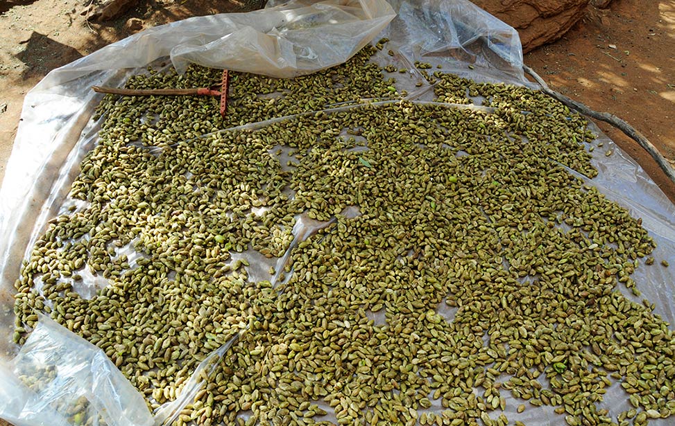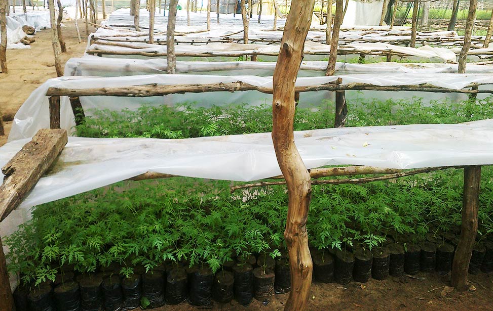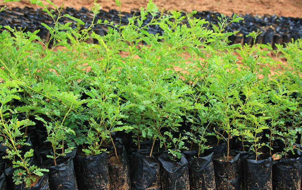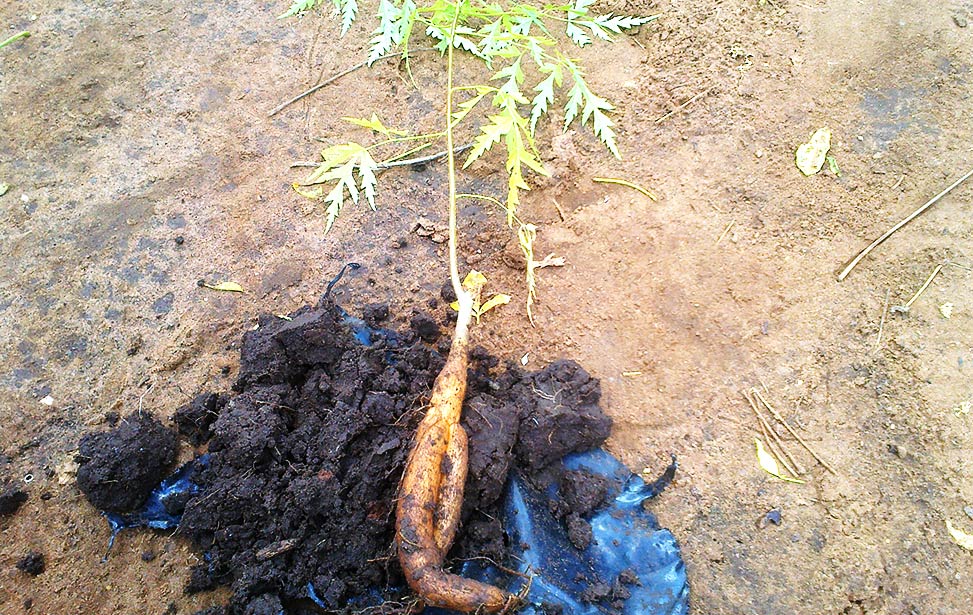 The total process of seedling production, between sowing and obtaining seedlings of appropriate size (one foot high) takes about three to three-and-a-half months. To shorten the process, farmers often collect root suckers from existing trees, and plant them in their farms. Sometimes seeds germinate in the wild, notably after fires or after dispersal by goats. Such seedlings are called wildings.