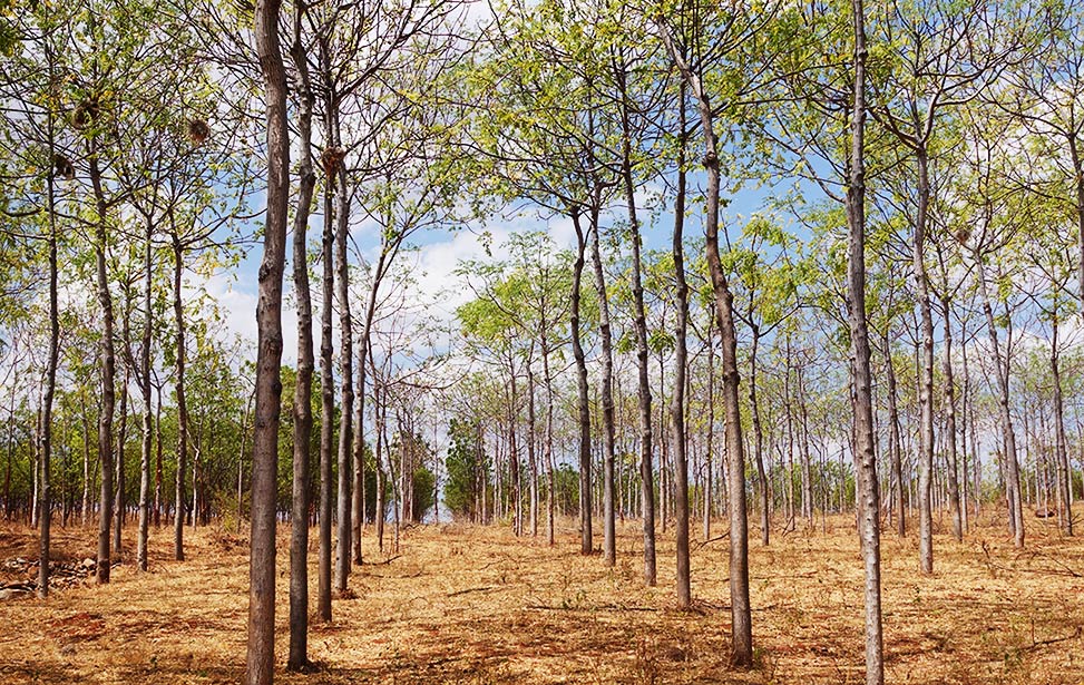 The final objective is to produce logs for timber, out of stems that have a diameter of over 40 centimeters (16″) and a clean bole (without branches) of 5 meters (16 ft). Several operations are important here: planting, spacing, protection/weeding, pruning and thinning.
